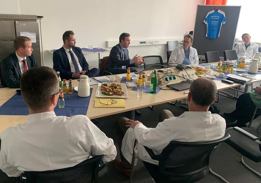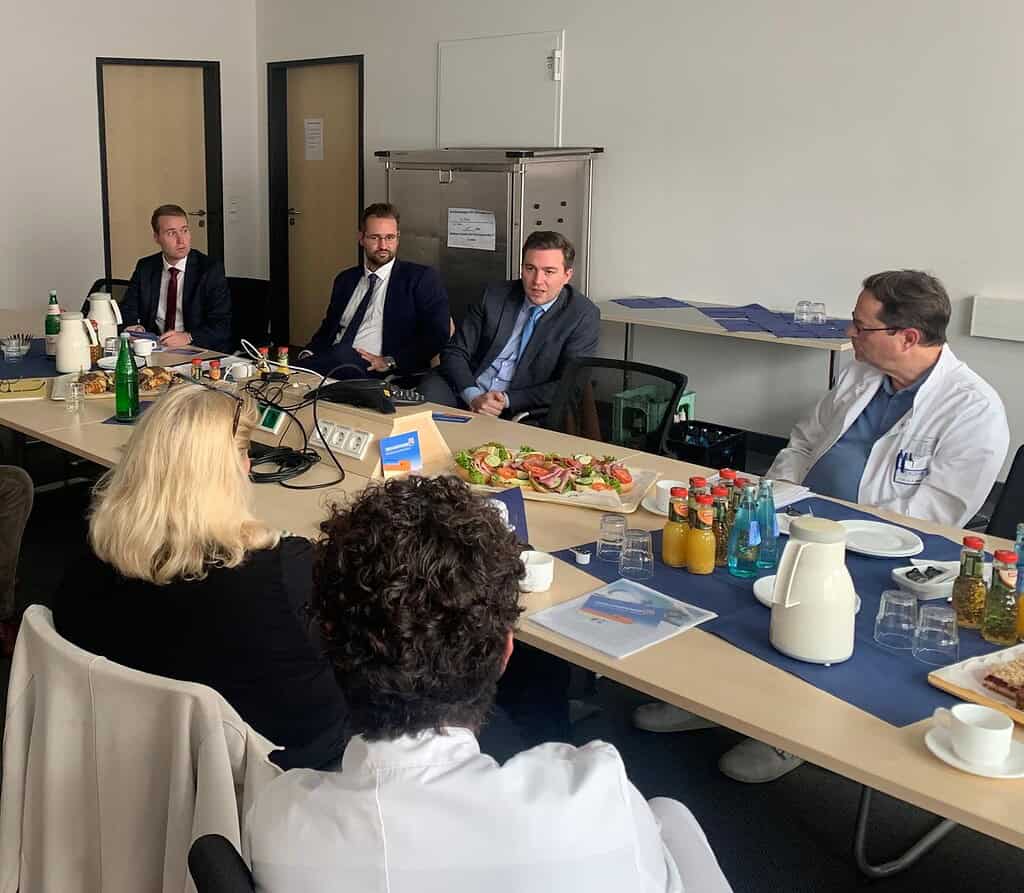 Am 17.10.24 besuchte das damalige Mitglied des Hessischen Landtages und Vertreter Gießens im Hessischen Landtag Herr Frederick Bouffier mit seinen Büromitarbeitern das Transplantationszentrum Gießen. Hintergrund des Besuches war, das Herr Bouffier sich über die Arbeit des Transplantationszentrums informieren wollte und mit dieser Bitte sich an uns gewandt hatte. Die Ärztlichen Leiter Vertreter der verschiedenen Transplantationsprogramme wie des Nierentransplantationsprogrammes, der Kinderherztransplantation und der Lungentransplantation stellten in diesem Zusammenhang ihre Arbeit vor. So hat das Transplantationszentrum in Gießen beispielsweise im Bereich der Herztransplantation eine große Expertise seit den 80er Jahren und zählt zu den führenden Zentren im Bereich Kinderherztransplantation innerhalb Deutschlands.